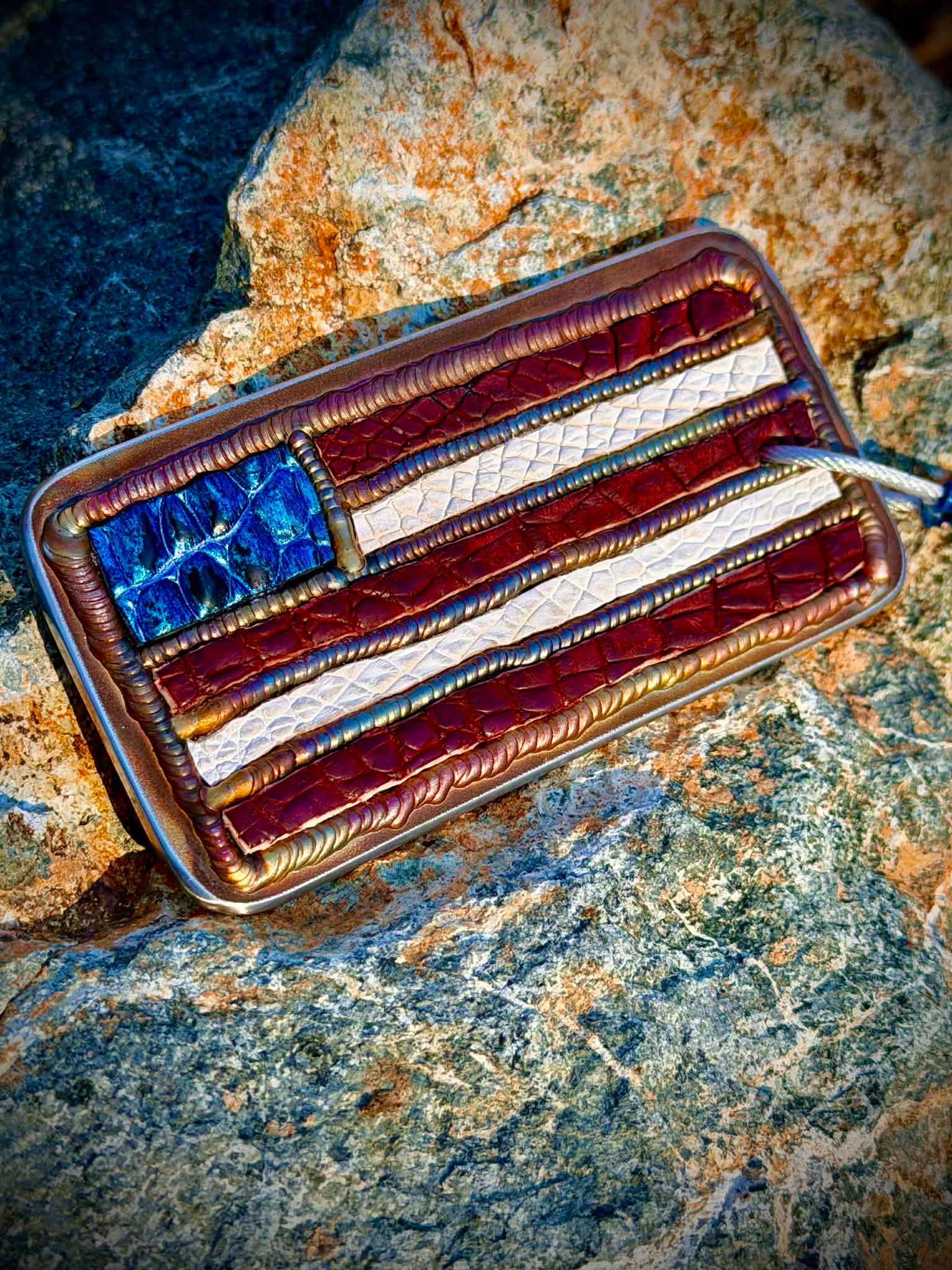 • Exotic Inlay: Features genuine alligator hide in red, white, and blue, meticulously inlaid into the flag pattern.