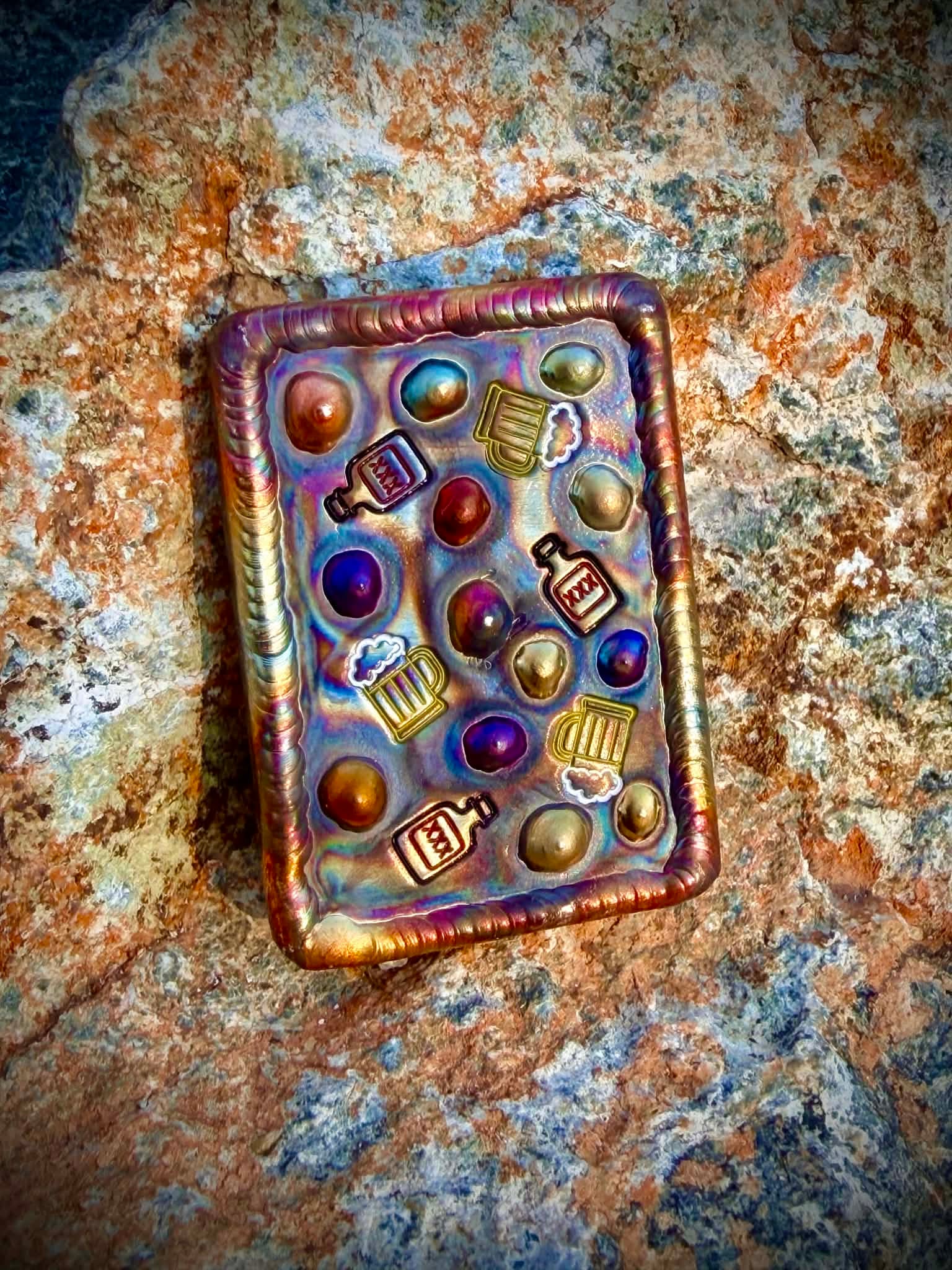 • Heavy Texture Reverse: The back of the marker is a showcase of TIG welding mastery, covered in various weld beads and "dots" that reveal a stunning spectrum of iridescent colors.