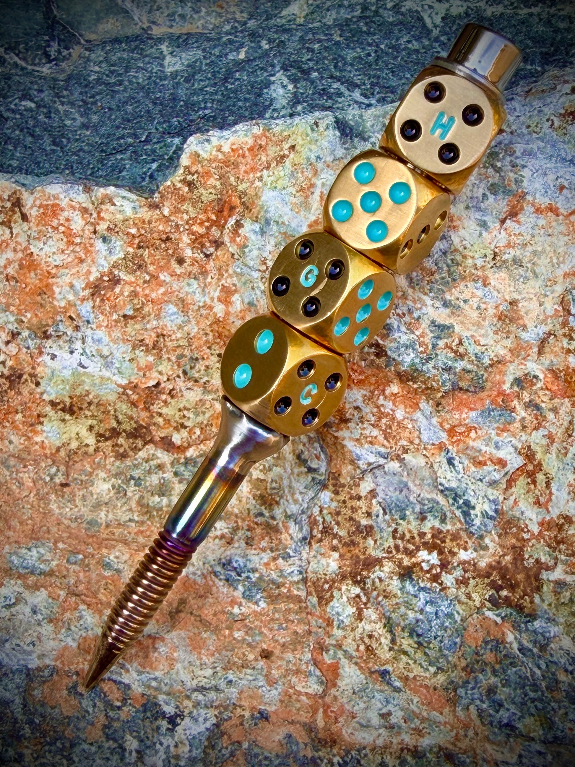 Meet the only divot tool that's as unyielding as your resolve to blame the wind. This bad boy is heavy for its size, ensuring that when you fix a pitch mark, it stays fixed. We took hand-polished solid brass spinning dice and welded them securely to the stainless tool to guarantee they won't fly off during an emotional toss. The dice are hand-stamped with HSGC and finished in a bold tiffany blue/midnight black paint fill, broadcasting two things to your foursome: "I take my gear seriously," and "Yes, that's probably whisky."