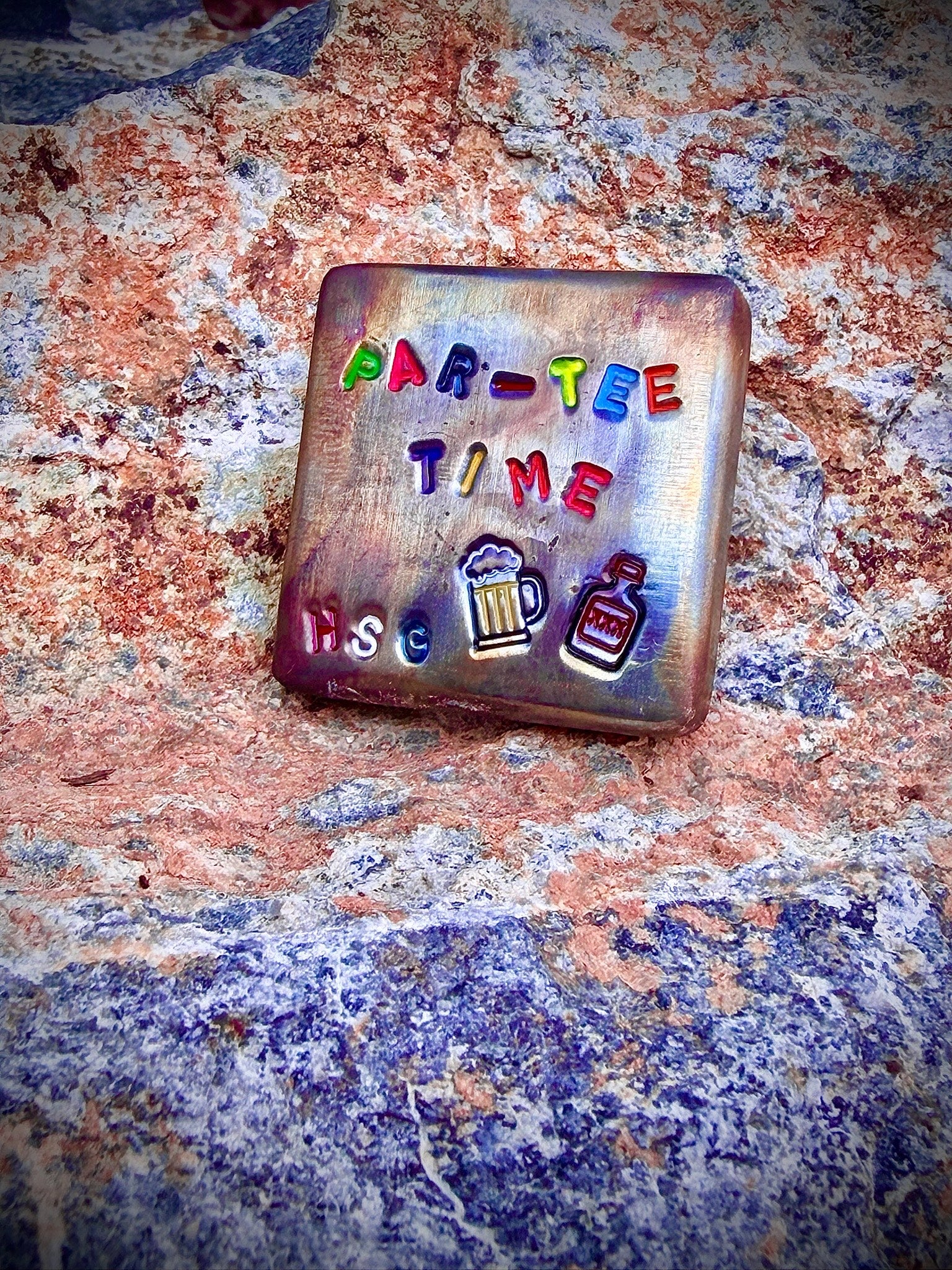 It's Par-Tee Time! This marker is your official reminder that you're on a golf course instead of stuck in the office—so go ahead and par-tee on! The front features a hand-welded, genuine smile guaranteed to show everyone your relaxed, happy mood. It's the perfect accessory for enjoying the best day of the week.